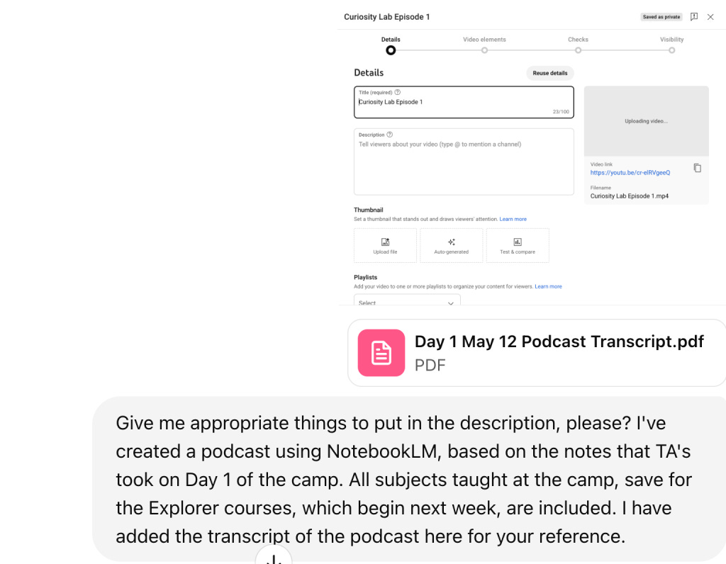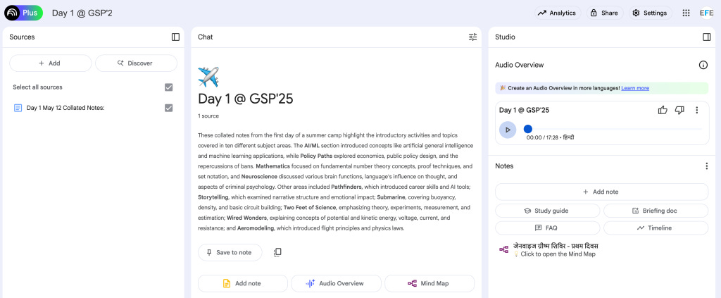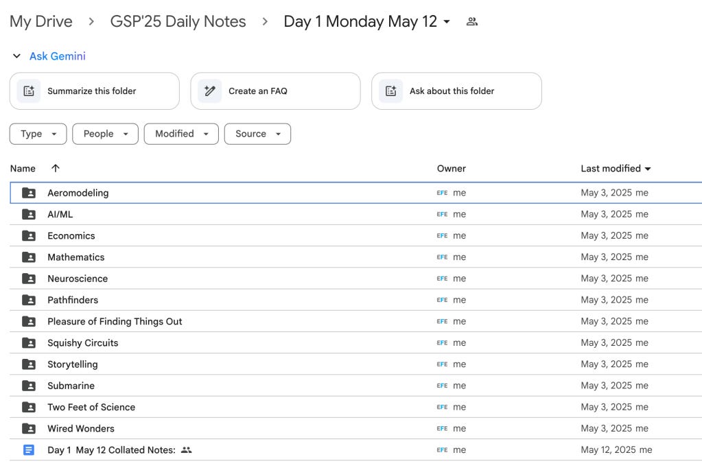 This is, just in case it wasn't clear already, an AI generated podcast. The teaching assistants used a simple shared folder on my GDrive account to upload notes that they took during the day...