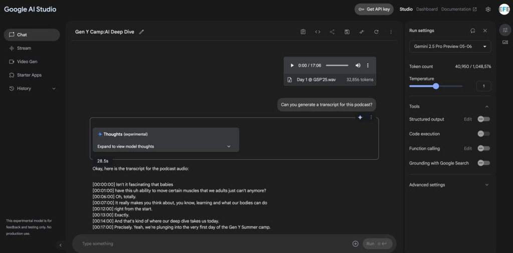 I then used AI Studio to generate a transcript...