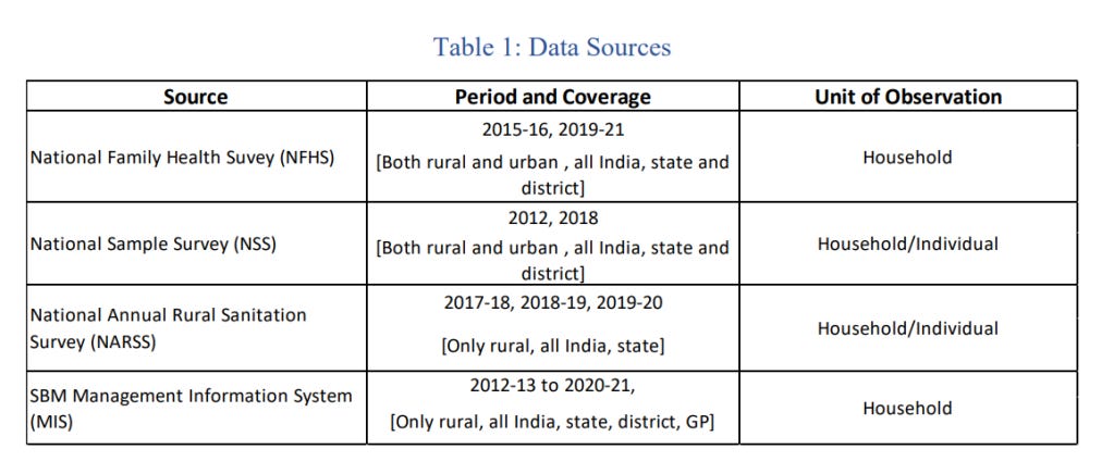 Each of these are important, and noteworthy. The report speaks about how the Swachh Bharat Mission - Gramin (SBM-G) builds on earlier programs - The Central Rural Sanitation Program (1986-1999) and the Total Sanitation Campaign (1999-2012, rebranded as Nirmal Bharat Abhiyan from 2012-2014), and mentions how the scale that this particular program achieved was truly noteworthy: