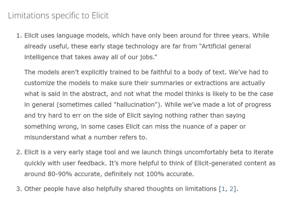 In response to this critique and other feedback, Elicit.org have come up with an explainer of sorts about how to use Elicit.org responsibly: