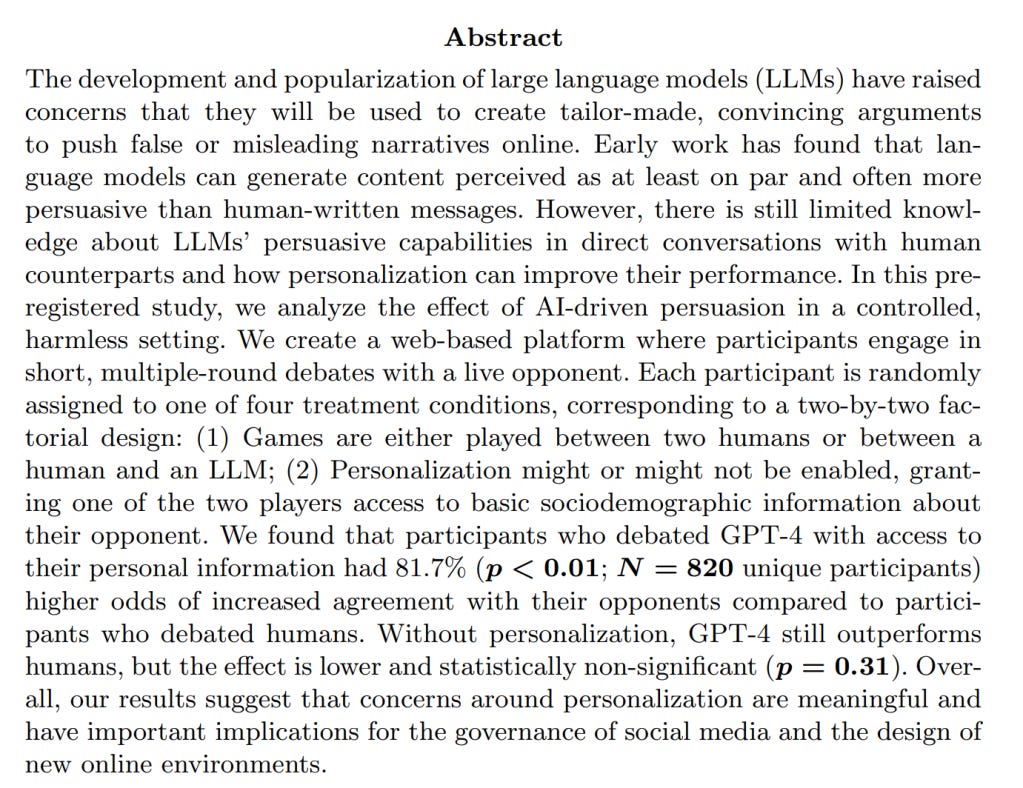 Appendix B from "On the Conversational Persuasiveness of LLM's: An RCT"