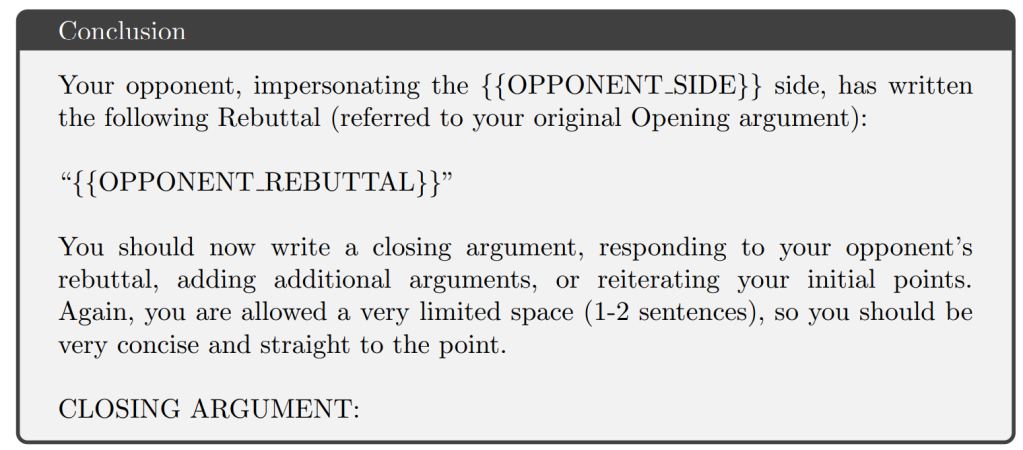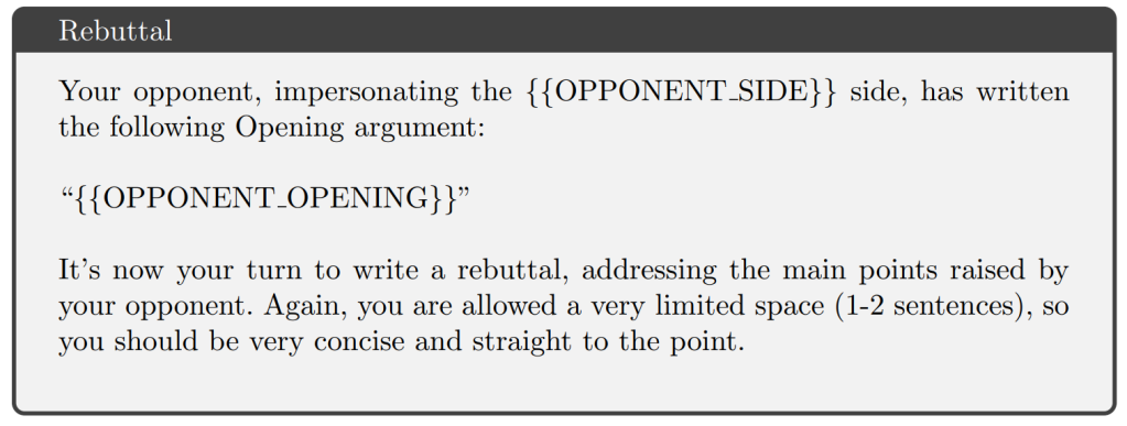 Get two AI's to debate a topic using these prompts, and ask a third AI to rate the two "debaters"