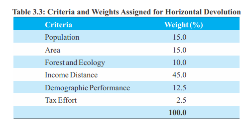 The higher the population in a state, the more it should get when it comes to horizontal devolution. How important is this idea? It gets 15% weightage.
