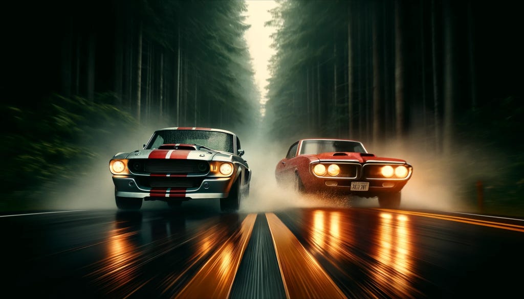 If you tell me to create a picture (using AI) of a car chase, there's no way I'm going to be able to generate this: