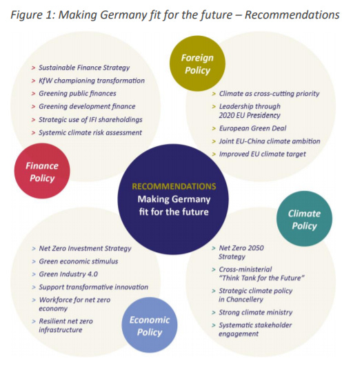 That is from the executive summary of a report titled "Is Germany ready for the future? The case for action in a climate changed world". The report speaks about how increasing digitilization, rising social inequality (globally), the disruption to the rules based trading order that worked so well for Germany, rising nationalism (again, globally) and low/non-existent aggregate demand will challenge Germany's current model. The infographic below gives their (the authors) recommendations to deal with these challenges. Also, the word for the day where I am concerned: mittelstand.