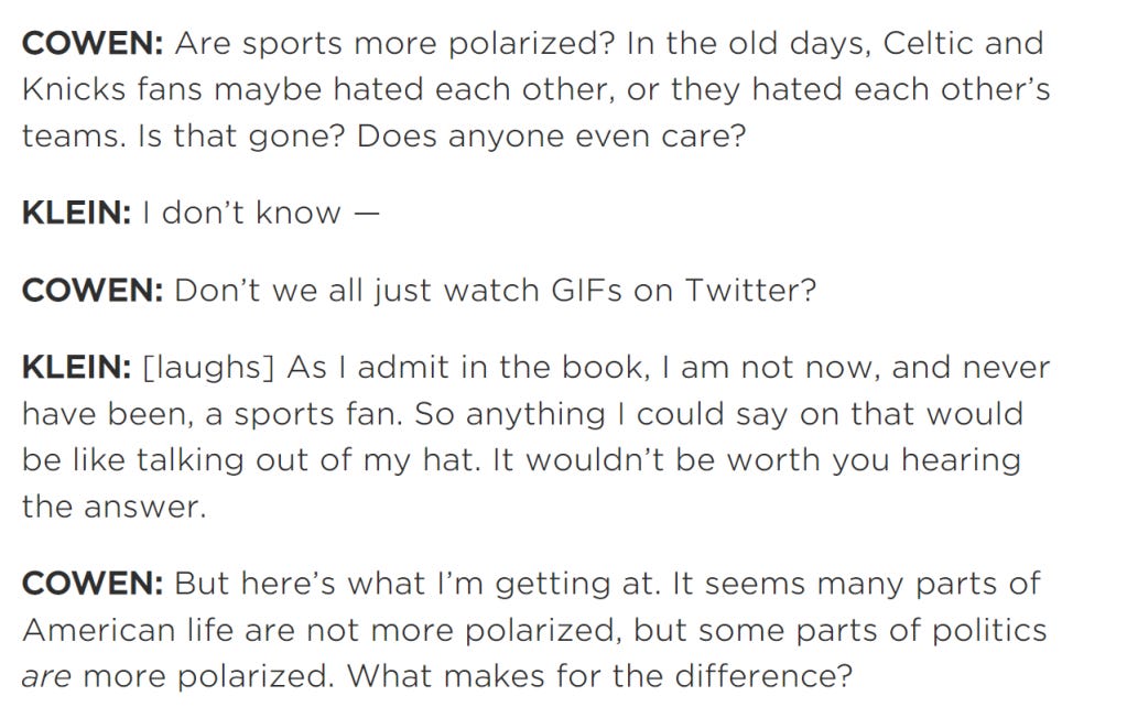 And I would feel very bad if you, the reader, were to read either my post or Haidt's essay in order to confirm your already existing fears about the ill-effects of social media. And so I urge you to read this column by Tyler Cowen next: