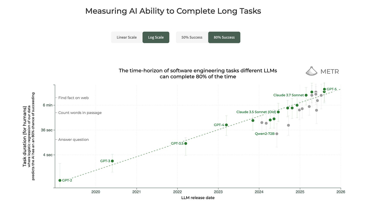 But of course, not only has computing power kept right on going, but the capabilities of the AI models we have been developing since at least 2020 has also been increasing. How quickly, you ask?