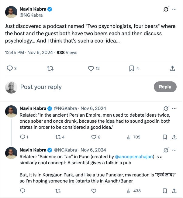 This particular bet paid off for the first time when Ravi responded to my message, and we found out that we not only stay in the same city (Pune), but also happen to live very close to each other. We met for breakfast, and discovered a mutual love for beer. A seemingly trivial detail, but as we shall learn soon, one that links together the many different tales that make up this blog post.