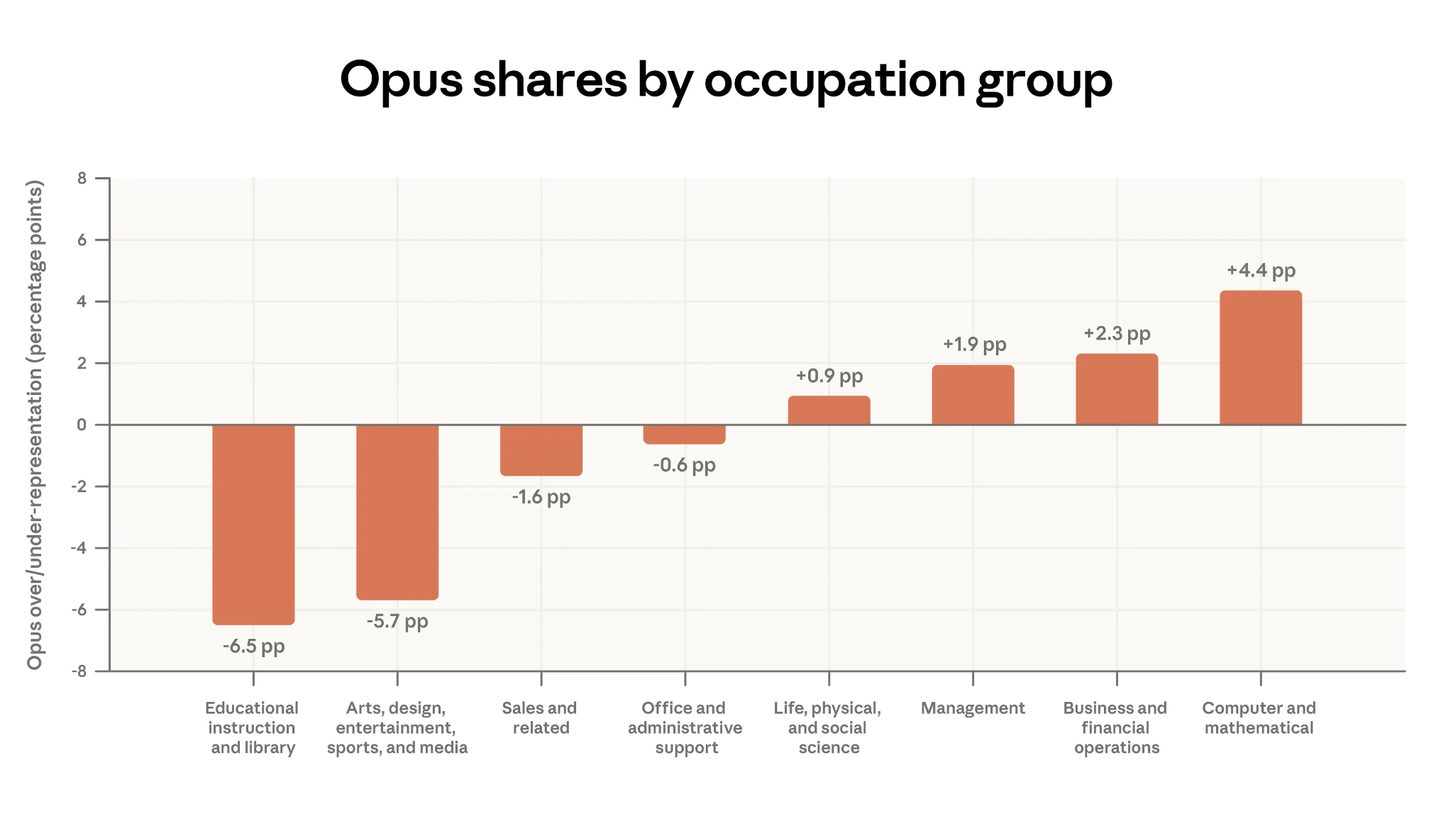 I suspect Opus’ share would correlate even more tightly with users’ own assessment of what percentage of their tasks can be automated. The people reaching for the most powerful model are the ones whose work most directly maps onto what AI can do. It would be interesting to look at what the understanding is, by profession, about what chunkable tasks their daily workflows can be broken down into.