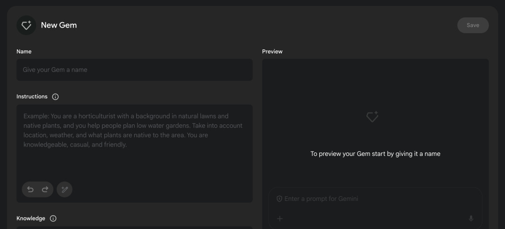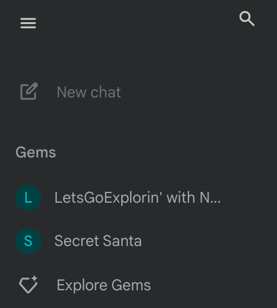 What are Gems? Well Gems are to Google what artifacts are to Claude, or custom GPTs are to ChatGPT. I only report these names, dear reader, I don't come up with them. Don't look askance at me, this is not my doing.