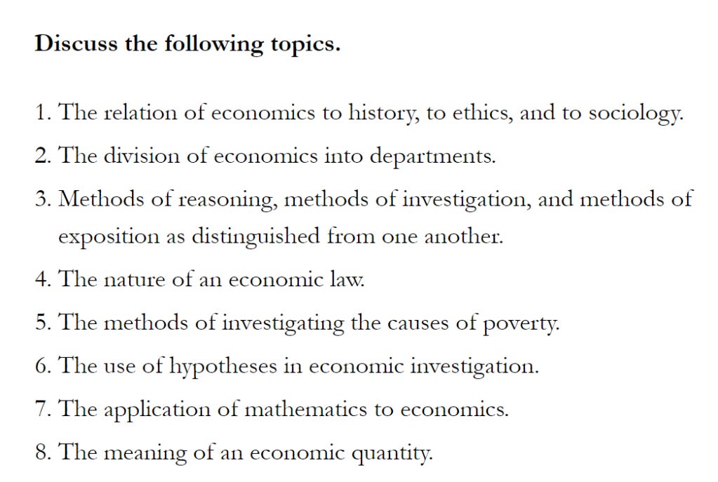 The post is about the semester end examination for a course called "Methods of Economic Investigation". Said exmaination for said course took place exactly one hundred and twenty years ago (yup, not a typo). While the blog post contains a couple of other very interesting points, I want to focus on just the examination: