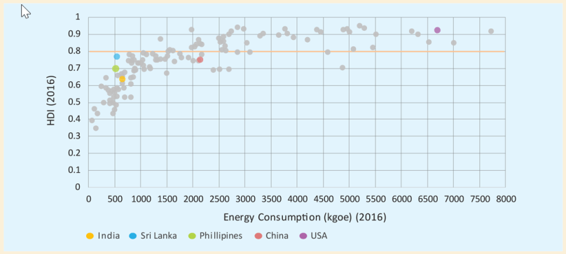 India doesn't too well in terms of energy consumption, and the data suggests that this may potentially have something to do with where we rank in terms of the Human Development Index.