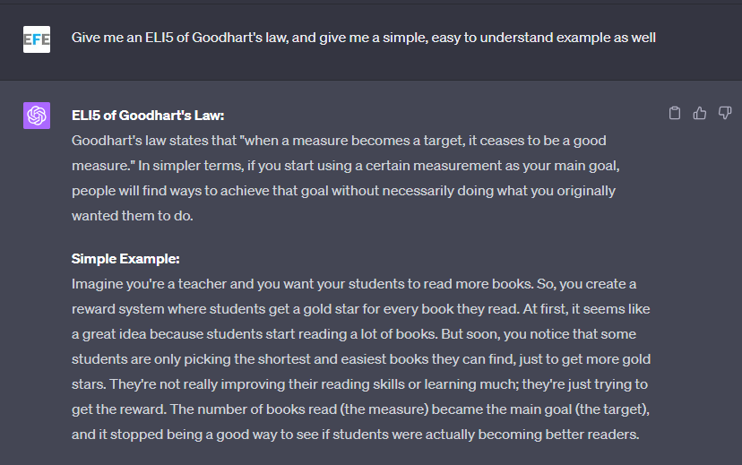 I explained what Goodhart's Law is in class the other day, and if you're wondering what it is, here you go: