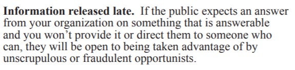 Here's a manual from the CDC about communicating during a crisis. What is shown below is a screenshot of a part of it: