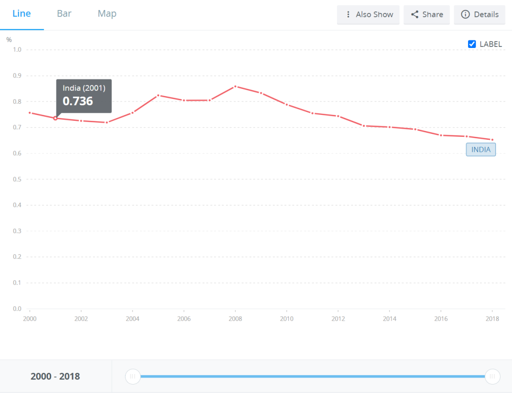 What about India, you ask? Here's a chart from an Indian Express article about the topic:
