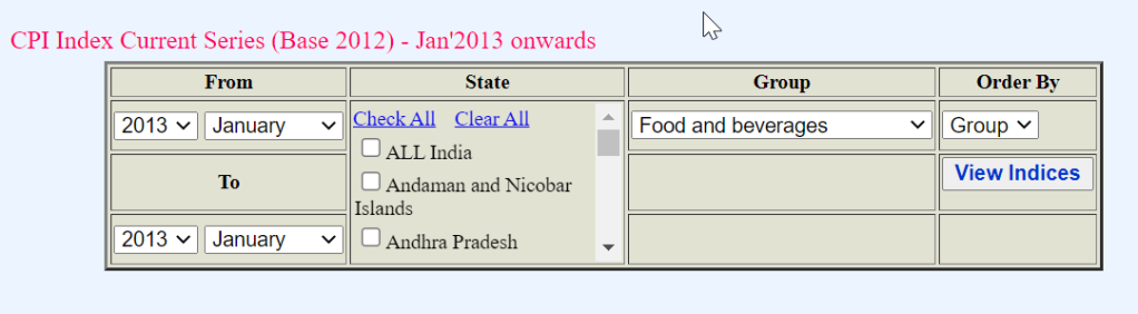 For the record, I know you can get CPI data from the old MOSPI website. But the point I am trying to make here is this: surely we can get (and surely we deserve) better data portals? For a country with the kind of software talent that India possesses, surely this is not the best way to design a UI?