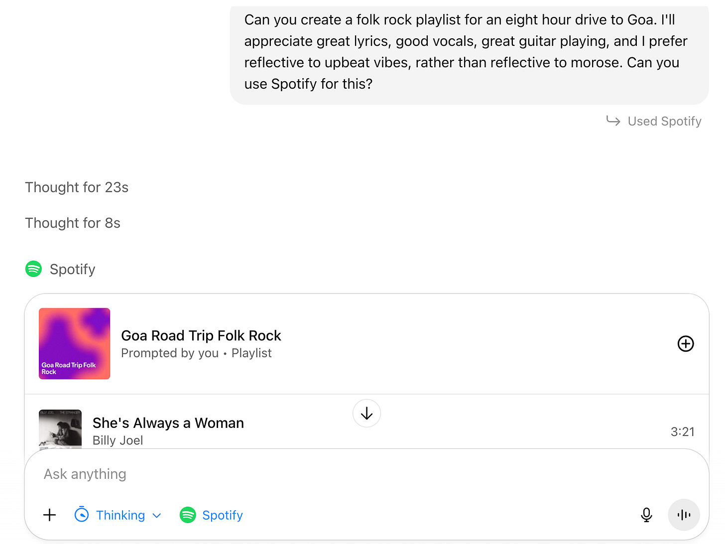 And it’s not just creating playlists on Spotify. You can also book hotels on Booking.com, create presentations on Canva, learn stuff on Coursera, create diagrams on Figma, or look up real estate listings on Zillow. And there is much more on the way, naturally.